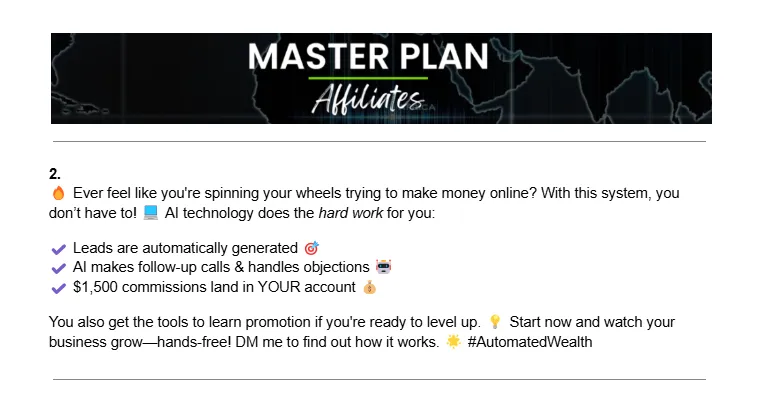 There are ready to copy and paste posts and articles as well as video content and Ai prompts you can use so you will never run out of ideas or things to post.